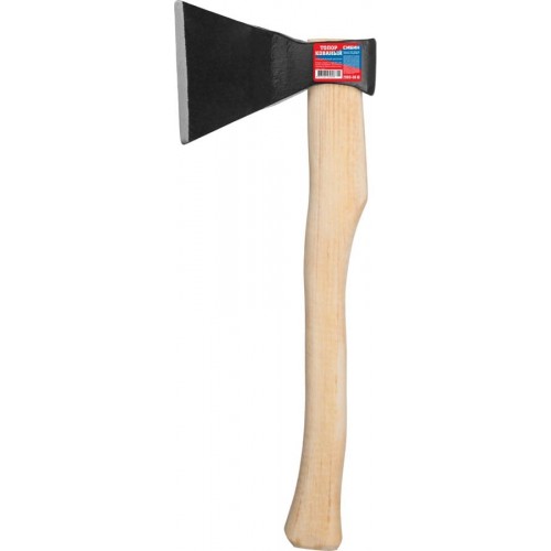 Топор кованый с прямым лезвием 2069-08_z01, предназначен для всех видов плотницких работ. Инструментальная сталь У8. Изготовлен в соответствии с ГОСТ 18578-89. Удобная деревянная рукоятка.