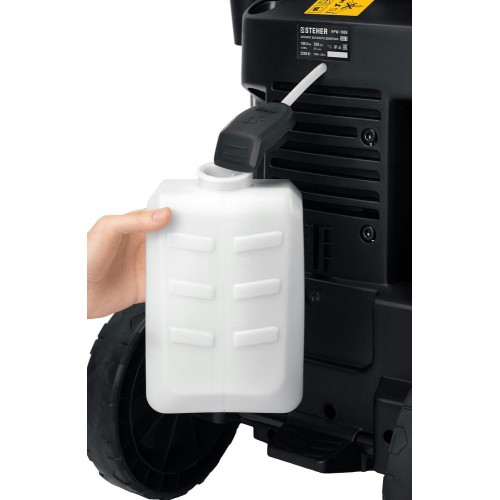 Мойка высокого давления STEHER HPW-180B, предназначена для образования струи воды высокого давления, используемой для мойки автомобилей, велосипедов и другой колесной техники, садового инвентаря, наружных стен и уличных покрытий. Бесщеточный двигатель. Функция самовсасывания позволяет использовать изделие без внешнего источника давления воды. Система полной остановки выключает двигатель при отпускании клавиши пистолета, что экономит энергию и увеличивает ресурс помпы. Высокая мощность выходной струи для эффективной мойки. Шланг длиной 8 м позволяет производить обработку без необходимости перемещать мойку. Барабан для предохранения шланга от перегибов при использовании и хранении и продления срока его службы. Сменные быстросъемные насадки с различными углами распыления для формирования струи различного давления, а также нанесения моющего средства. Прилагаемый фильтр на вход для защиты помпы от загрязнений в воде. Встроенный бачок для моющего средства для предварительной обработки пенным составом.