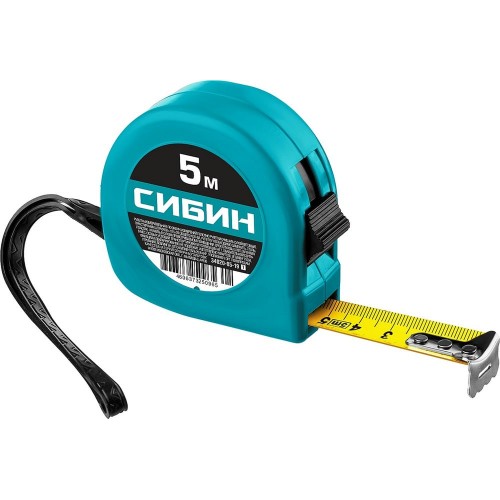 Рулетка измерительная СИБИН 34020-05-19_z01, предназначена для проведения линейных замеров. Длина - 5 метров.
