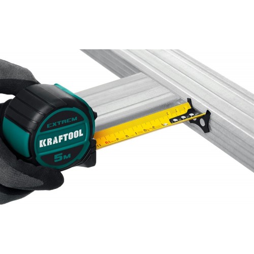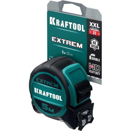 Рулетка измерительная KRAFTOOL 34127-5, предназначена для измерения линейных размеров путем непосредственного сравнения со шкалой. Особопрочное нейлоновое покрытие X-SAFE защищает полотно со всех сторон. Двухсторонее полотно упрощает работу. Двухстороний особомощный магнитный крюк. Ударостойкий обрезиненный корпус. Утолщенное полотно из высококачественной инструментальной стали.