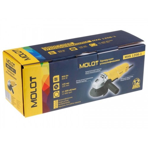 Одноручная углошлифмашина MOLOT MAG 1208-1 в кор. 800 Вт, 125 мм, 11000 об/мин