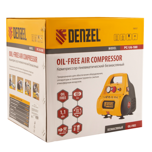 Компрессор воздушный DENZEL РС 1/6-180, 1.1 кВт, 180 л/мин, 6 л