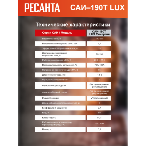 Сварочный аппарат инверторный РЕСАНТА САИ-190T LUX