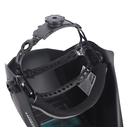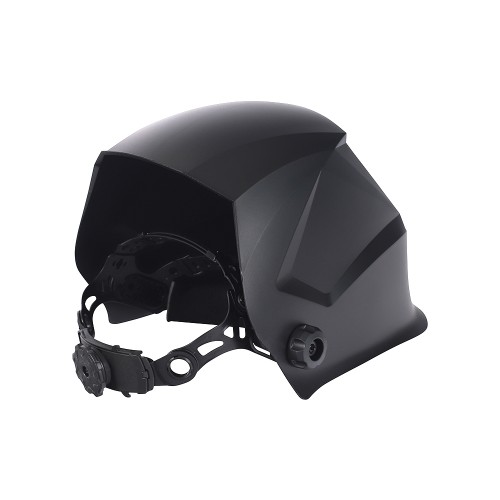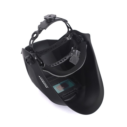 Изготовлена из высокопрочного пластика. В щитке предусмотрен современный самозатемняющийся светофильтр. Фильтр дополнительно защищен поликарбонатным стеклом. Для удобства оголовье легко подстраивается под размер головы, имеются 4 вида регулировки.
