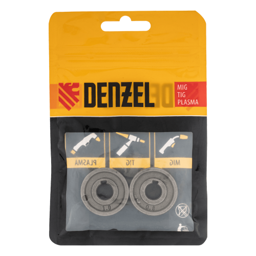 Подающий ролик Denzel 93650 с V-профилем, 2 шт. в упаковке, — элемент конструкции сварочного аппарата, предназначенный для протягивания стальной проволоки диаметром 0,8-1 мм. Совместим с моделями Denzel 94313, 94314, 94361, а также со сварочными полуавтоматами других торговых марок.