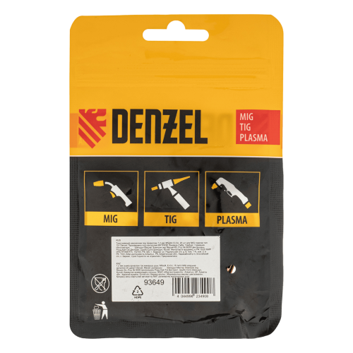 Токосъемный наконечник Denzel 93649 из меди E-CU, с резьбовым соединением M6х24, 20 шт. в упаковке, совместим со сварочными горелками типа 15 (в том числе с моделью Denzel 93641) и предназначен для подвода тока к проволоке диаметром 1,2 мм на выходе в область сварки. Используется для замены изношенной детали и позволяет быстро восстановить работоспособность горелки.