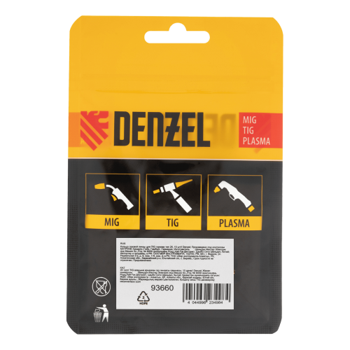 Кольцо газовой линзы Denzel 93660, 10 шт. в упаковке, предназначено для установки на TIG-горелку типа 26. Совместимо с TIG-горелками Denzel 93643, 93644, а также с моделями других торговых марок с аналогичным посадочным разъемом.