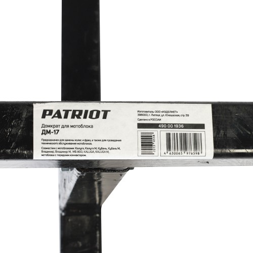 Домкрат для мотоблока PATRIOT ДМ-17. С этим домкратом вы можете комфортно заменить колесо, установить дополнительные фрезы, поставить грунтозацепы, сменить масло и многое другое. Домкрат выполнен в виде специальной стойки и изготовлен из высокопрочного, устойчивого к износу металла.
