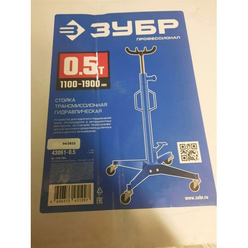 ЗУБР 0.5 т, 1100-1900 мм, трансмиссионная гидравлическая стойка 43061-0.5
