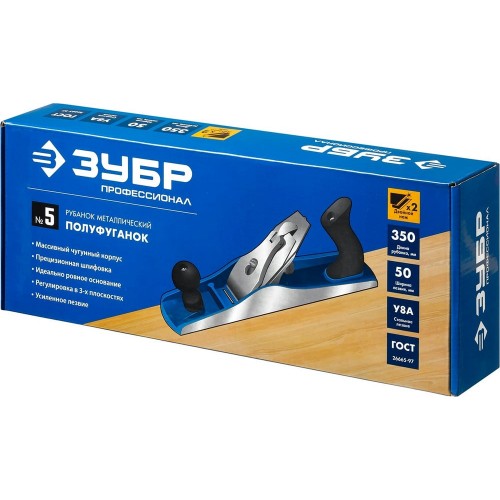 Рубанок ЗУБР 18505-35_z02, предназначен для чистового строгания древесины различных пород. Помимо основного ножа имеет стружколом, который надламывает стружку, что обеспечивает получение более гладкой поверхности древесины. Материал лезвия: высокоуглеродистая сталь, тип ножа: двойной.