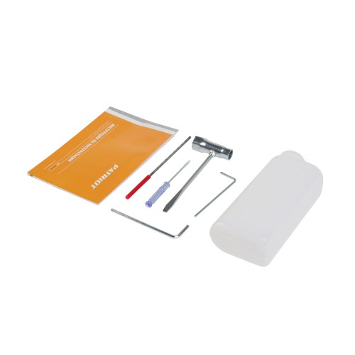 В комплекте поставки - емкость для смешивания топливной смеси,  напильник для заточки цепи, необходимый для обслуживания набор инструмента.