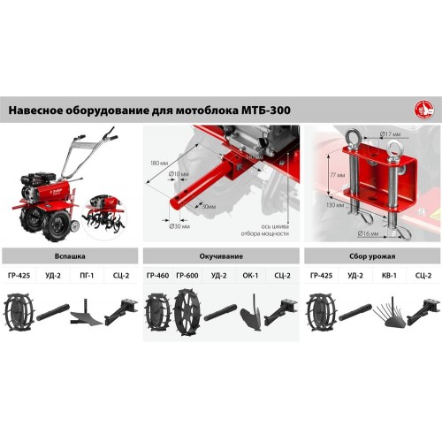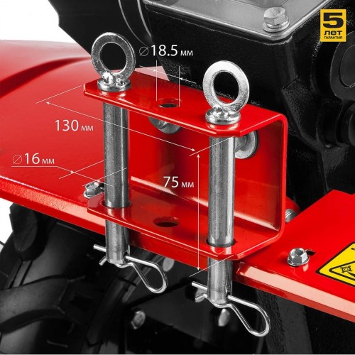 - Универсальная сцепка позволяет использовать различное навесное оборудование