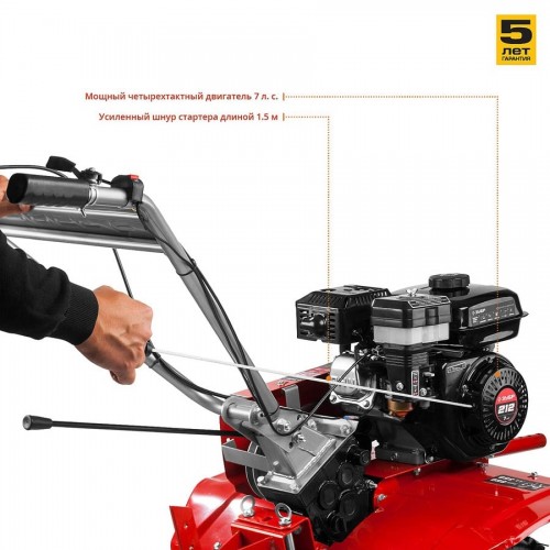 - Рукоять мотоблока с возможностью регулировки по вертикали делает управление более комфортным