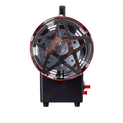 Контроль пламени происходит с помощью биметаллического термодатчика. При его угасании подача газа прекращается. Розжиг осуществляется с помощью пьезоэлемента. Помимо обогрева газовая тепловая пушка выполняет функцию вентилятора при отключении газового шланга. Камера сгорания оснащена горелкой, которая при подаче газа создает высокую температуру. С помощью вентилятора поток воздуха проходит через теплообменник и нагревается. Встроенный термостат препятствует перегреву оборудования, поддерживает необходимую температуру.