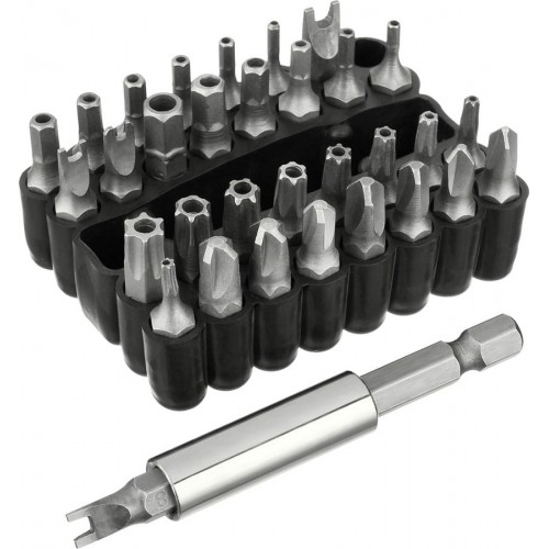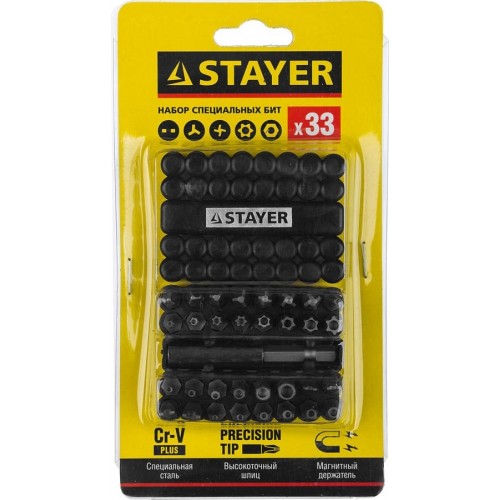 Набор бит STAYER 26084-H33, предназначен для слесарных, монтажных и ремонтных работ. Профессиональные биты для ручного и механизированного инструмента изготовлены из высококачественной стали и имеют точную геометрию шлицов, что обеспечивает длительный срок службы. В комплект входит магнитный адаптер. Высококачественная легированная хромованадиевая сталь обеспечивает высокую механическую прочность. Точная геометрия шлицов обеспечивает точную посадку в крепеже. Адаптер с магнитным держателем обеспечивает быструю и надежную фиксацию насадки