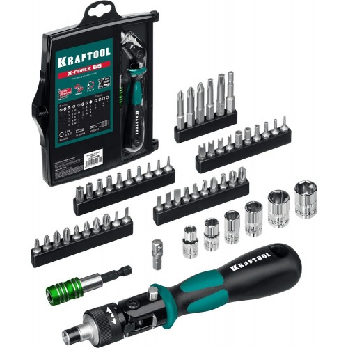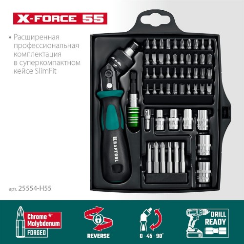 KRAFTOOL X-Force-55 55 предм., Реверсивная отвертка с насадками (25554-H55_z01)
