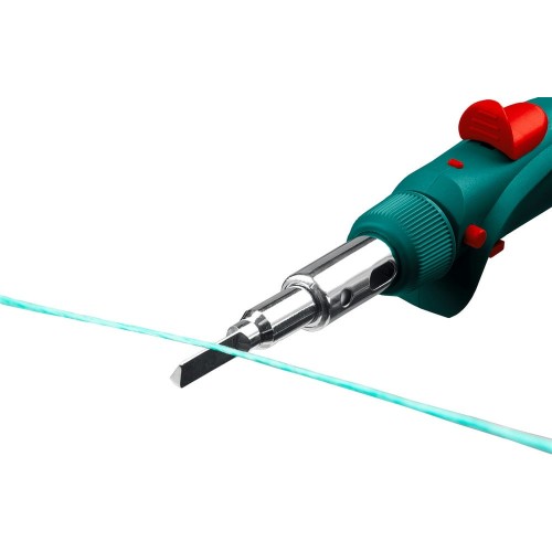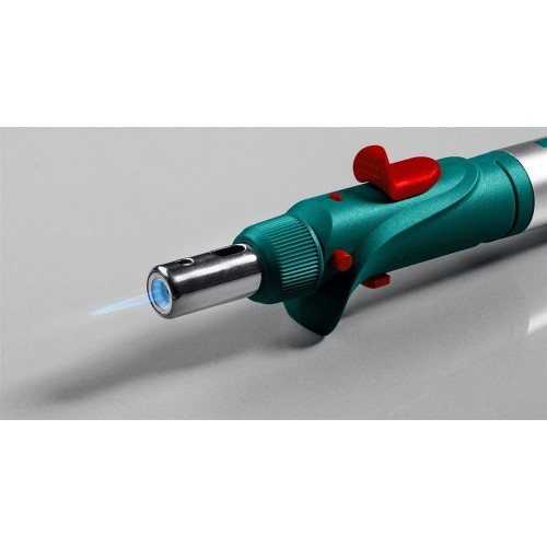 Газовый паяльник представляет собой горелку с набором насадок. Предназначен для плавки и сварки пластиковых частей, нагрева малых металлических частей и плавки металла с низкой температурой плавления, ремонта ювелирных изделий, сгибания тонких стеклянных трубок, пайки медных трубок, сварки электронных и электротехнических элементов, где очень важна точность и надежность. Изделие обладает возможностью выбора температурного режима, что позволяет максимально соответствовать требованиям любой работы. Этот легкий в обращении инструмент, работающий на бутане. Универсальная горелка имеет встроенный клапан для заправки. Заправляется от баллона с бутаном для газовых зажигалок. Создает устойчивое пламя температурой до 1300 °С.