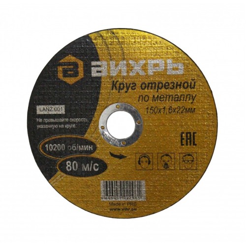 Круг отрезной по металлу ВИХРЬ 150х1,6х22 мм