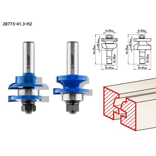 ЗУБР рабочая длина-25,4 мм, хв.-12 мм, d-22 мм, D= 41 мм, набор фрез рамочных №3, 28773-41.3-H2