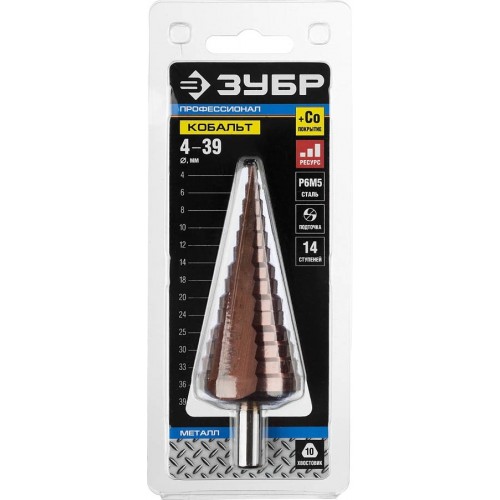 Сверло Зубр 29672-4-39-14_z01, предназначено для сверления металлических конструкций и заготовок, листовых материалов, цветных металлов, пластика. Рекомендованы для использования для сверления листового металла толщиной до 4мм, цветных металлов, пластмасс и других материалов. Сверло изготовлено из быстрорежущей стали Р6М5 для продолжительного срока службы. Крестообразная подточка позволяет начать сверление без предварительных работ. Угол заточки при вершине равный 135° для ускорения процесса сверления. Сверло изготовлено методом вышлифовки и соответствует классу точности "А1" .