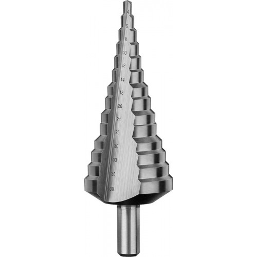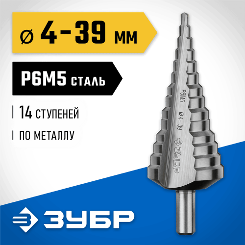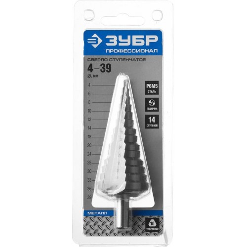 Сверло Зубр 29670-4-39-14_z01, предназначено для сверления металлических конструкций и заготовок, листовых материалов, цветных металлов, пластика. Рекомендованы для использования для сверления листового металла толщиной до 4мм, цветных металлов, пластмасс и других материалов. Крестообразная подточка позволяет начать сверление без предварительных работ. Угол заточки при вершине равный 135° для ускорения процесса сверления. Сверло изготовлено методом вышлифовки и соответствует классу точности "А1" .