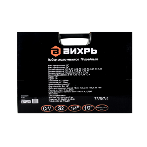 | Модель | 1/2" , 1/4" , CrV, пластиковый кейс 76 предм |
