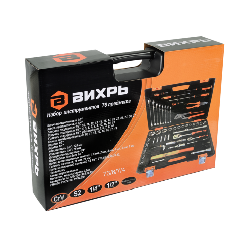 Набор инструментов ВИХРЬ, 1/2", 1/4", 76 предм, кейс
