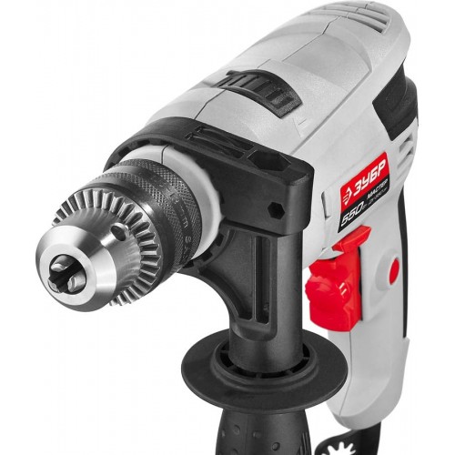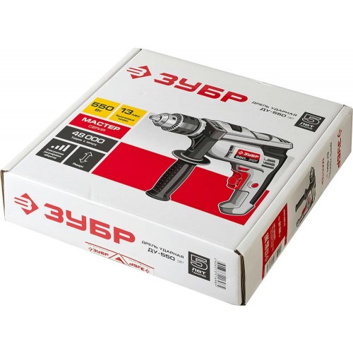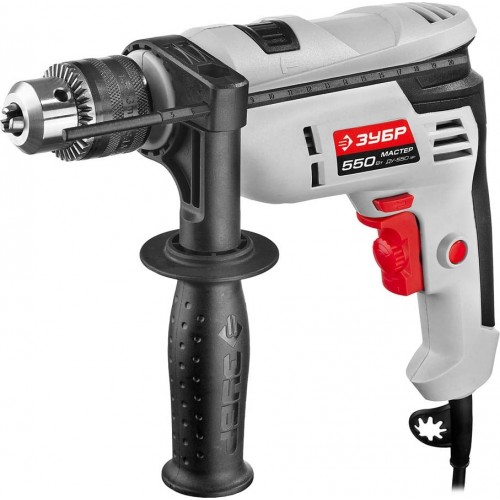 Дрель ударная электрическая ЗУБР ДУ-550 ЭР, предназначен для сверления отверстий в различных материалах (дерево, сталь, кирпич, легкий бетон и т. д.). Компактная и легкая дрель с ключевым патроном, плавной регулировкой оборотов и надежной конструкцией - лучший подарок домашнему мастеру. Широкий диапазон регулировки частоты вращения, удобная эргономика - все, что нужно для качественной работы. Удобный инструмент для эффективной и производительной работы. Легкая и компактная дрель для работ по дому. Функция сверления с ударом позволяет выполнять отверстия в кирпиче и легком бетоне. Качественный кулачковый патрон для насадок диаметром до 13 мм. Электронная регулировка предела частоты вращения удобным колесиком в широком диапазоне. Изменение частоты вращения степенью нажатия на выключатель в пределах установленного колесом максимума. Ударные шестерни из хромового сплава продлевают срок жизни ударного механизма. Изменение направления вращения (реверс) позволяет использовать изделие в качестве шуруповерта.