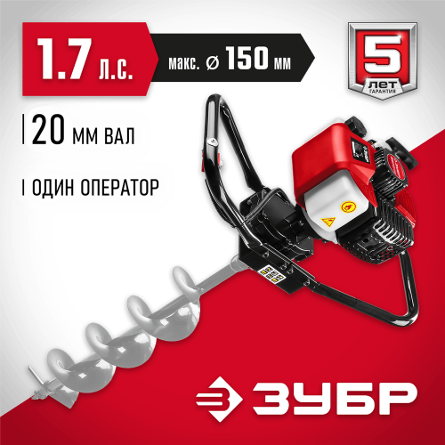 ЗУБР Ø60-150 мм, 43 см³, 1 оператор, без шнека, мотобур (бензобур) МБ1-150 Мастер