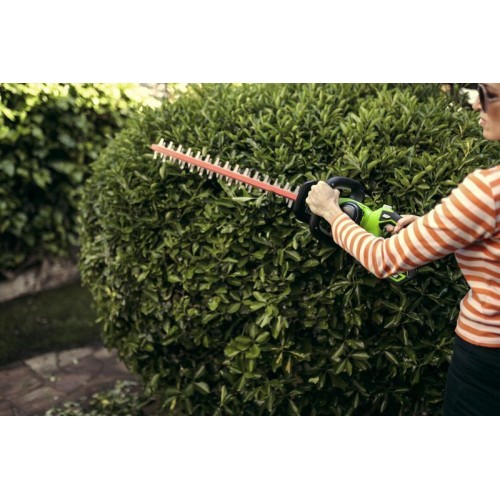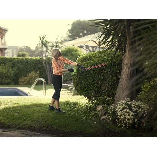 Аккумуляторный кусторез Greenworks G40HT61 40 вольт с легкостью справиться с подрезкой деревьев, кустарника или живой изгороди.