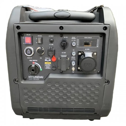 Hyundai HHY 9050Si имеет две розетки 230 В для подключения бытовой техники или строительного инструмента. Также есть выход постоянного тока напряжением 12 В для зарядки автомобильной АКБ и два USB-разъема для подключения смартфона, планшета и других гаджетов. Регулятор AVR стабилизирует выходное напряжение, гарантируя стабильное питание подключенной техники. Также он бережет двигатель генератора от перегрузки, предотвращая его раннюю поломку.