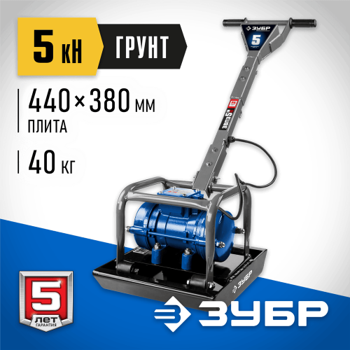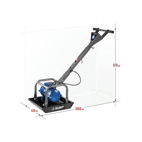 Электрическая виброплита ЗУБР проста в использовании и не требует от оператора приобретения специальных навыков для управления. Машина работает от электрической сети напряжением 220 В, поэтому не производит вредных выхлопов.