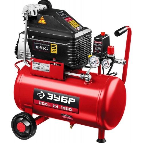 ЗУБР 1500 Вт, 200 л/мин, 24 л, поршневой, безмасляный, компрессор воздушный КП-200-24 Мастер