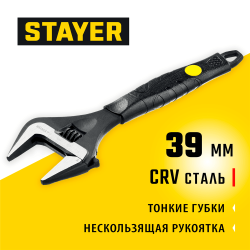 Профессиональные разводные ключи STAYER предназначены для завинчивания гаек, болтов и других деталей, изготовлены из высококачественной хромованадиевой стали, снабжены миллиметровой измерительной шкалой, а, благодаря наличию тонких губок, инструмент удобен для выполнения работ в труднодоступных местах.