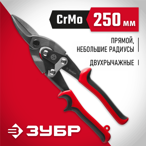 Ножницы по металлу двухрычажные ЗУБР 23140-S, предназначены для точного реза листового металла. Рычажный механизм. Закаленные режущие кромки. Удобные рукоятки.