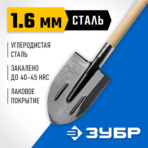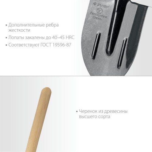 Лопата штыковая с ребрами жесткости ЗУБР 39455, предназначена для проведения садово-огородных и строительных работ. Штыковая лопата является является простым и универсальным инструментом для широкого фронта работ, от перекопки твердых почв до перерезания небольших корней. Надежное защитное покрытие. Прочный деревянный черенок. Закаленная углеродистая сталь.