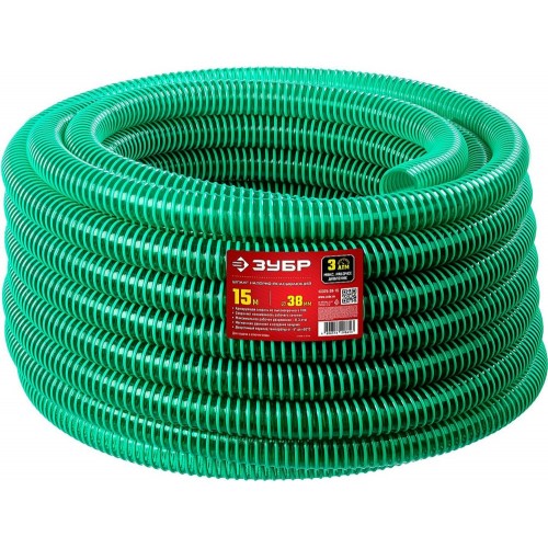 ЗУБР 38 мм x 15 м, 360 гр/м, со спиралью ПВХ, 3 атм., шланг напорно-всасывающий 40325-38-15
