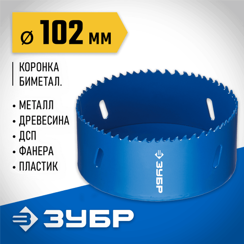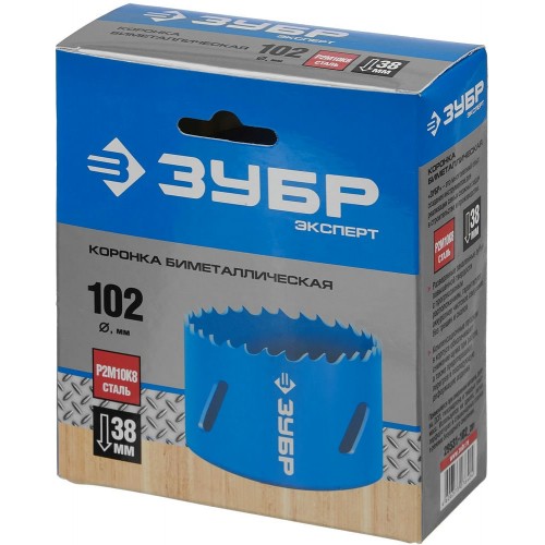 Буровая коронка биметаллическая ЗУБР 29531-102_z01, применяется при сверлении металла, дерева, ДСП, гипсокартона и твёрдых пластмасс. Универсальные биметаллические кольцевые пилы ЗУБР имеют разведённые закалённые зубья повышенной твёрдости с прогрессивным расположением. Благодаря чему гарантируется аккуратное чистовое сверление без трещин и сколов. Компенсационные прорези в корпусе обеспечивают снижение шума при работе, а также предотвращают деформацию пилы вследствие перегрева изделия.