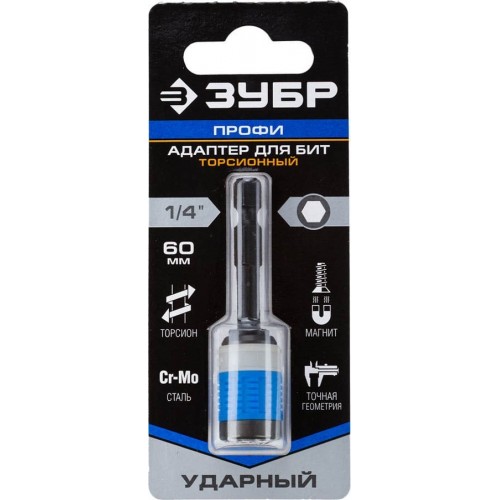 Профессиональные адапторы для ударных бит 26815-60 - надежный инструмент для ударных шуруповертов. Торсионная зона предохраняет наконечник биты от разрушения. Применяется совместно с ручным и механизированным инструментом.