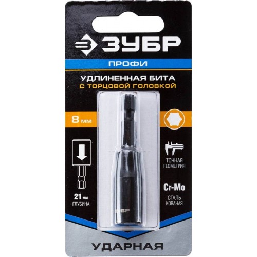 Профессиональные биты ЗУБР с торцовой головкой , для ударных шуруповертов. Экстратвердые рабочие грани обеспечивают высокую надежность, предохраняют от разрушения при пиковых нагрузках.