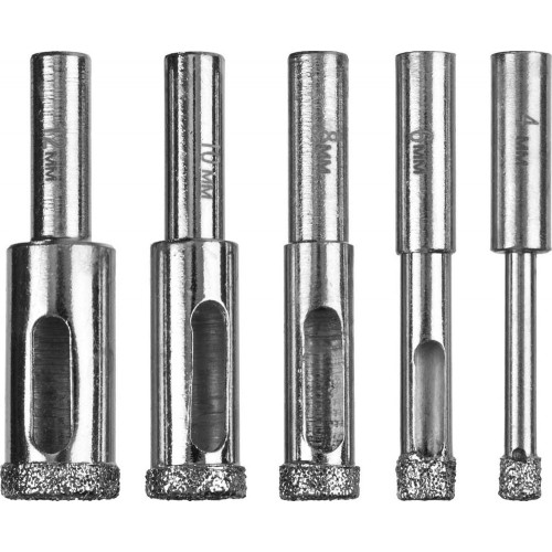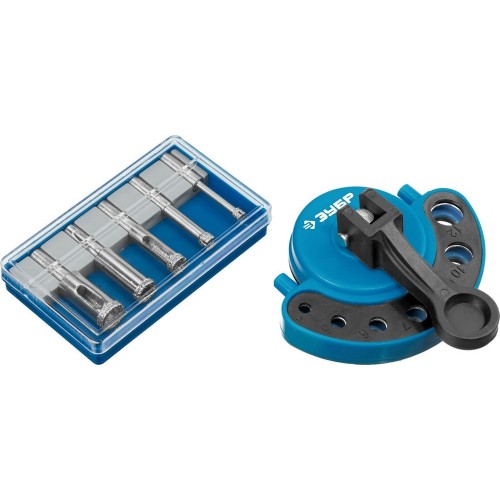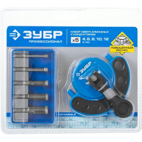 ЗУБР Ø4, 6, 8, 10, 12 мм, 5 предметов, набор сверл алмазных трубчатых по кафелю и стеклу с кондуктором 29851-H6