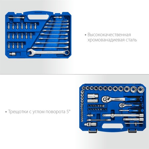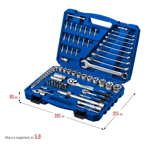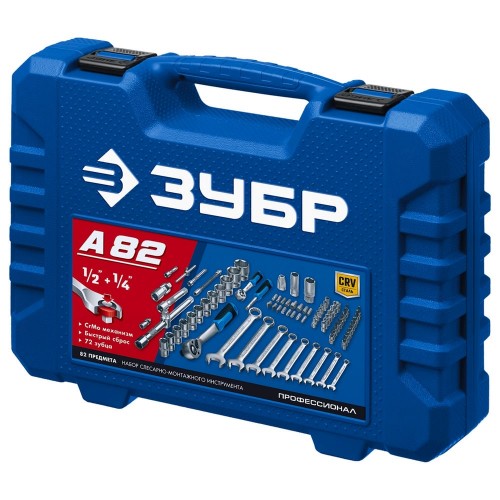ЗУБР А-82, 82 предм., (1/2" + 1/4"), универсальный набор инструмента, Профессионал (27635-H82_z01)