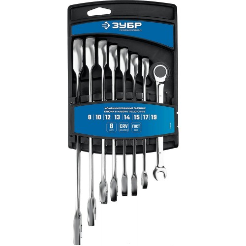 Набор комбинированных гаечных ключей трещоточных ЗУБР 27074-H8_z01, используется для работы с шестигранным крепежом. Ключ гаечный - профессиональный инструмент. Благодаря правильному подбору материала и параметров технологического процесса выдерживает высокие нагрузки и стоек к истиранию рабочих граней