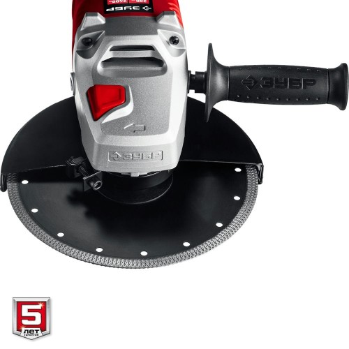 Угловая шлифмашина ЗУБР УШМ-230-2405 П, предназначена для зачистки, шлифовки и резки металлов, обработки бетона и камня при установке соответствующих шлифовальных, отрезных, алмазных кругов. Специально разработанный корпус редуктора для улучшения теплоотвода и улучшения прочности самого нагруженного узла. Система плавного пуска позволяет включать мощный двигатель без рывка и пусковой перегрузки. Пылезащищенный выключатель (степень защиты IP5X) - надежная защита основного узла. Поворотные голова и основная рукоятка для более комфортной работы даже в сложных условиях. Удобная блокировка шпинделя для простой смены диска. Фирменная дополнительная рукоятка, устанавливаемая в 2 положениях. Широкий эргономичный выключатель с пылезащитой, блокировкой непреднамеренного включения, а также фиксацией во включенном положении.