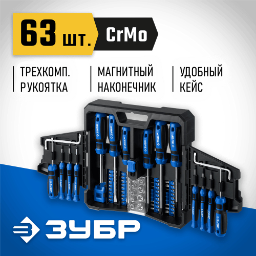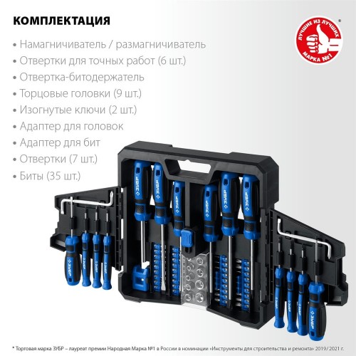 Набор отверток Зубр 25243, предназначен для монтажа и демонтажа резьбовых соединений. Универсальный набор отверток с битами с самыми широкими возможностями применения. Выдерживают высокие нагрузки благодаря высококачественной хромомолибденовой стали, закаленной по особой технологии. Имеют большой ресурс, обеспечивают высокое качество выполнения работ. Трехкомпонентные рукоятки оптимальной формы обеспечивают надежный и комфортный захват. Удобный кейс для хранения и переноски. Магнитные наконечники для удобства работы.