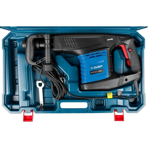 Отбойный молоток электрический SDS-Max ЗУБР ЗММ-25-1500 ЭВК, предназначен для разрушения конструкций из бетона, железобетона, кирпича и камня, долбления уплотненного грунта, асфальтовых, бетонных и плиточных покрытий и других строительных работ. Оптимальное сочетание мощности и удобства работы. Профессиональный отбойный молоток с большой силой удара. Одно из наиболее мощных изделий в своем классе. Патрон SDS Max для установки широкого спектра профессионального расходного инструмента и быстрой замены в процессе работы. Антивибрационная система значительно снижает вредное воздействие вибрации на оператора при длительной работе. Оптимальный отвод тепла и небольшой вес благодаря корпусу редуктора из легкого сплава. Большая сила удара генерируется механизмом без давления на инструмент. Электронная регулировка частоты ударов обеспечивает подстройку режима работы изделия под различные материалы и операции. Вертикальная компоновка электродвигателя позволяет разместить более мощный ударный механизм в компактном корпусе.