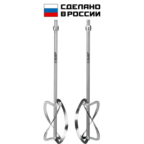 Комплект насадок предназначен для установки в ручной миксер ЗУБР ЗМР-1350Э-2, МРД-1400. Прочная металлическая конструкция позволяет размешивать густые тяжелые смеси. Хвостовик данной насадки уникален и имеет «ключ» для исключения неправильной установки. В комплекте поставляется две насадки (левая, правая).