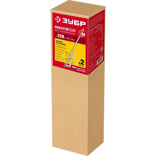 Набор насадок ЗУБР МНЛ-2-220, предназначен для перемешивания легких растворов, для установки в ручной миксер ЗУБР ЗМР-1350Э-2, МРД-1400. Прочная металлическая конструкция позволяет размешивать густые тяжелые смеси. Хвостовик данной насадки уникален и имеет «ключ» для исключения неправильной установки. В комплекте поставляется две насадки (левая, правая).