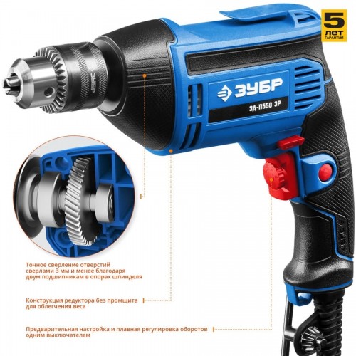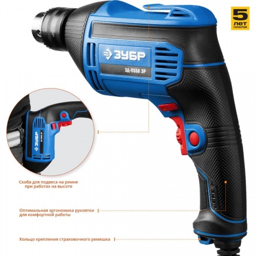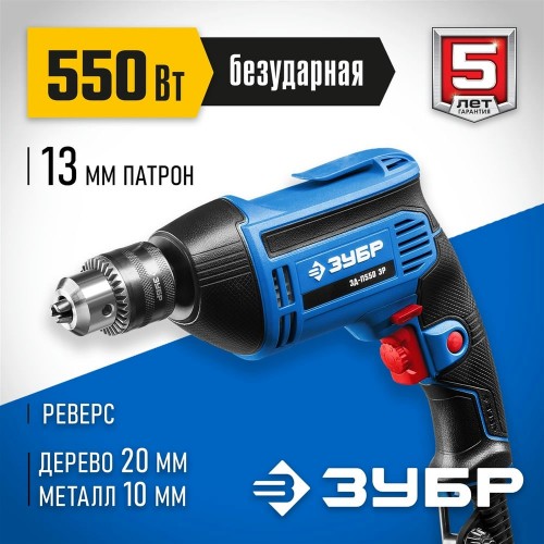 ЗУБР 550 Вт, дрель безударная реверсивная ЗД-П550 ЭР Профессионал