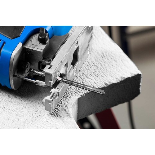 • Увеличенная рабочая длина полотна обеспечивает возможность резки строительных материалов повышенной толщины